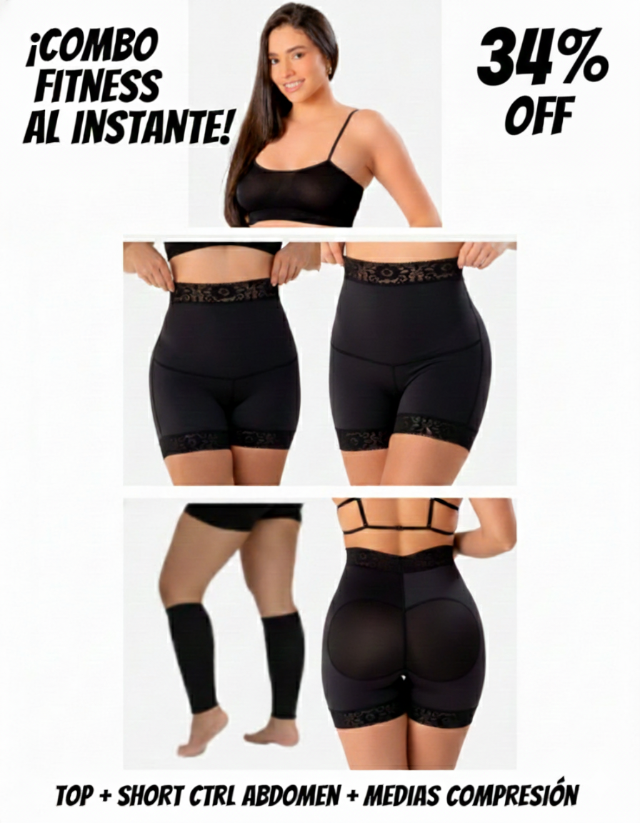 Top + Short control abdomen tiro alto + Medias de compresión.