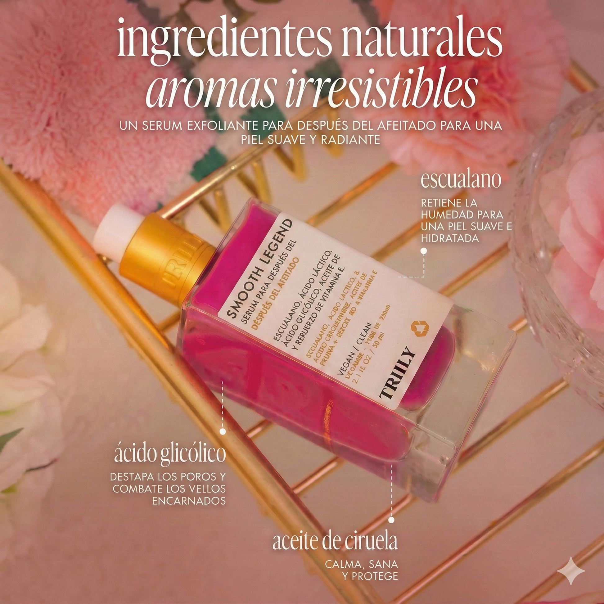 Truly Smooth Legend es ese serum que te aplicas después de depilarte… y de repente, tu piel se ve suave, se siente calmada y huele increíble.